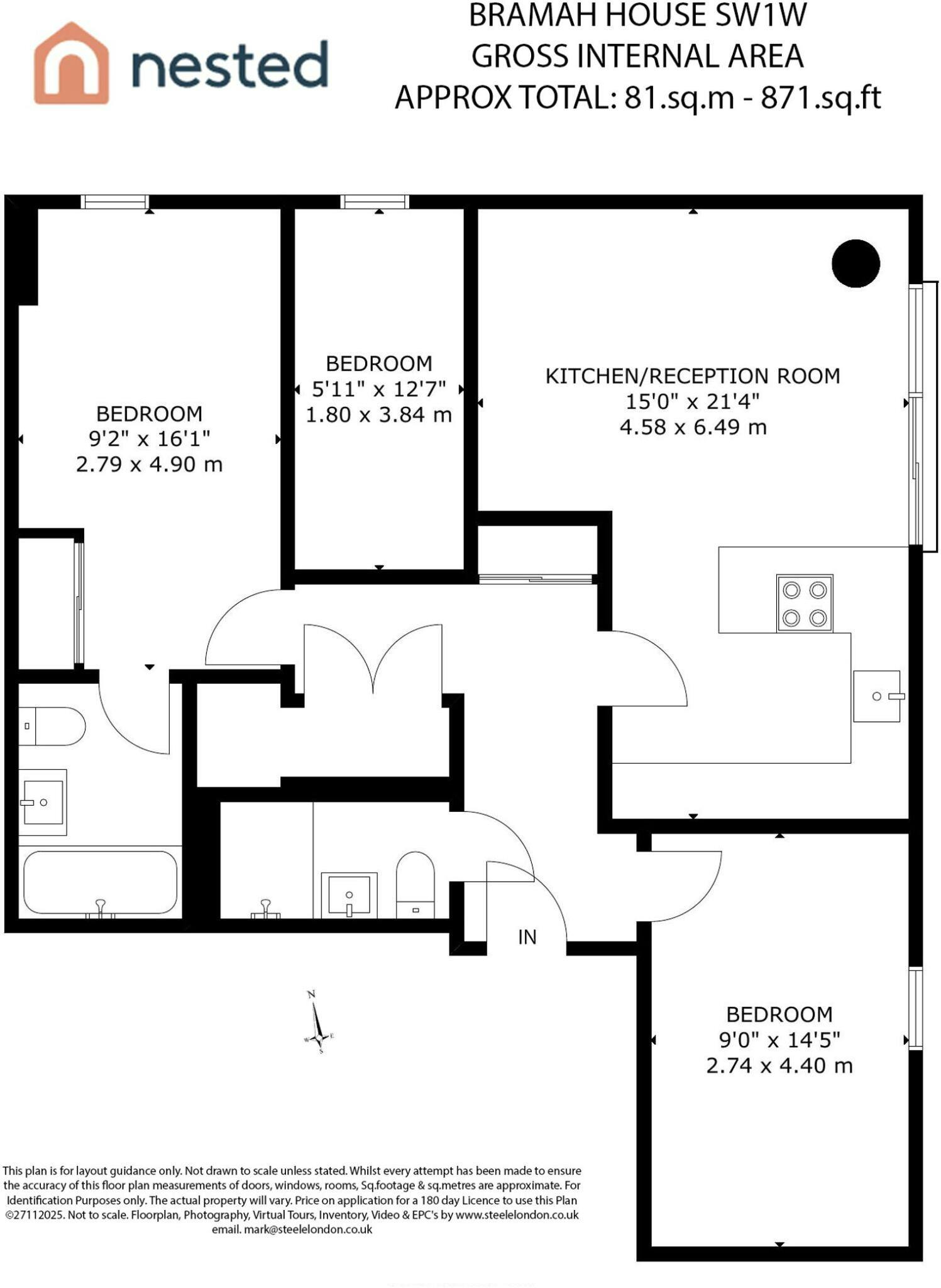 Situated on the 4th floor of Bramah House and featuring 2 double bedrooms (one with en-suite), an additional single bedroom/ office, open plan living area/ kitchen and a family bathroom off the hallway, this apartment would make an ideal home or investment. Some refurbishments works have just taken place and the apartment is fitted with comfort cooling.