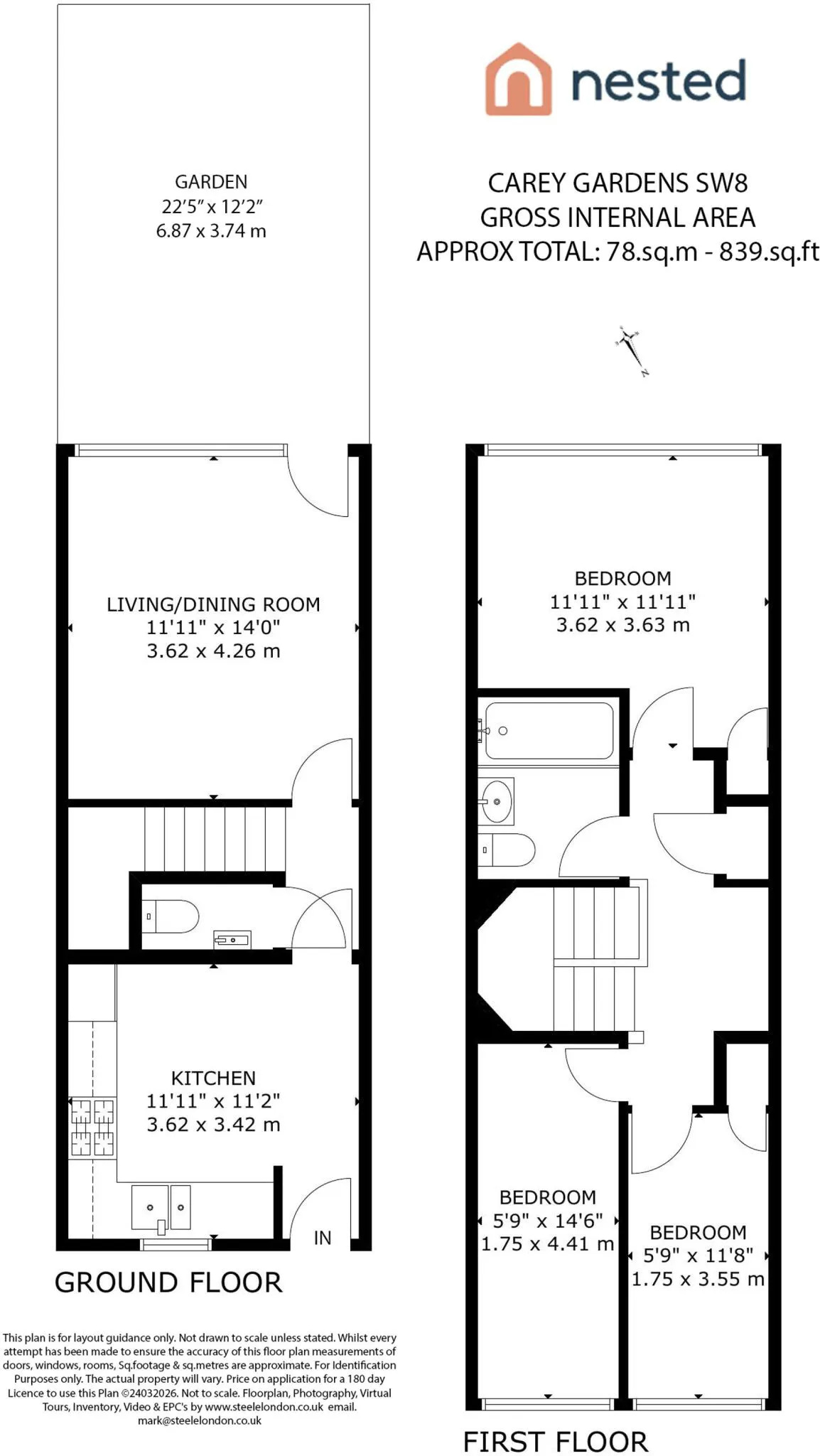This immaculate, 3 double bedroom duplex apartment in Carey Gardens, SW8, is available now via Nested. The ground floor boats a separate kitchen with plenty of space for a dining table, a WC, and a large, light filled living area with direct access to the low maintenance and private garden. Upstairs is the huge main bedroom, a family bathroom and two further double bedrooms. This 839 square foot apartment gives you the feeling of living in a house and is not to be missed.