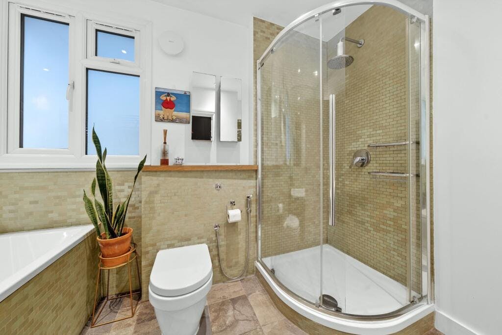 Upon entering, you are greeted with a spacious entrance hall with wall panelling as a feature and the two large double bedrooms which offer plenty of space for large wardrobes, chest of drawers and a sizeable desk for those looking to work from home. The main bedroom is extremely light due its large sash windows fitted with shutters. The second bedroom features a stunning ceiling rose, period coving and a tiled fireplace hearth. The bathroom is modern, clean and spacious and hosts a separate shower and bath tub. Off the hall is a 110 square foot cellar- perfect for storage. At the rear of the house you’ll find a recently renovated kitchen with Neff appliances and Quooker tap, countertop seating and the living area with wood flooring and an exposed brick wall effect. With plenty of windows and skylights this room is flooded with natural light. Concertina doors from the living area lead out to the private garden which has been tastefully thought out and perfect for that summer BBQ. Bamboo lines the rear boundary to add an exotic feel to this paradise garden.