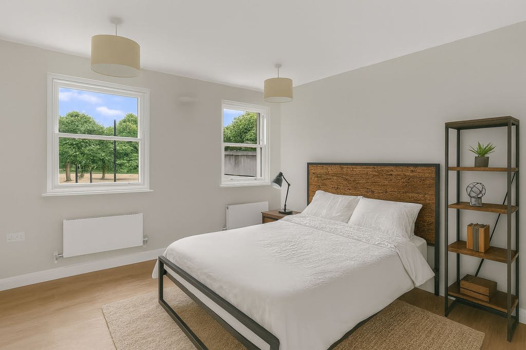 Inside, you’ll find a thoughtfully designed space with high-spec details throughout — including brand-new electrics with USB sockets, and pre-wired TV mount points. The sleek bathroom comes with a steam-free mirror with speakers for that added touch of luxury. There are also double-glazed wooden sash windows, video intercom entry, and a mix of spot and pendant light fittings.