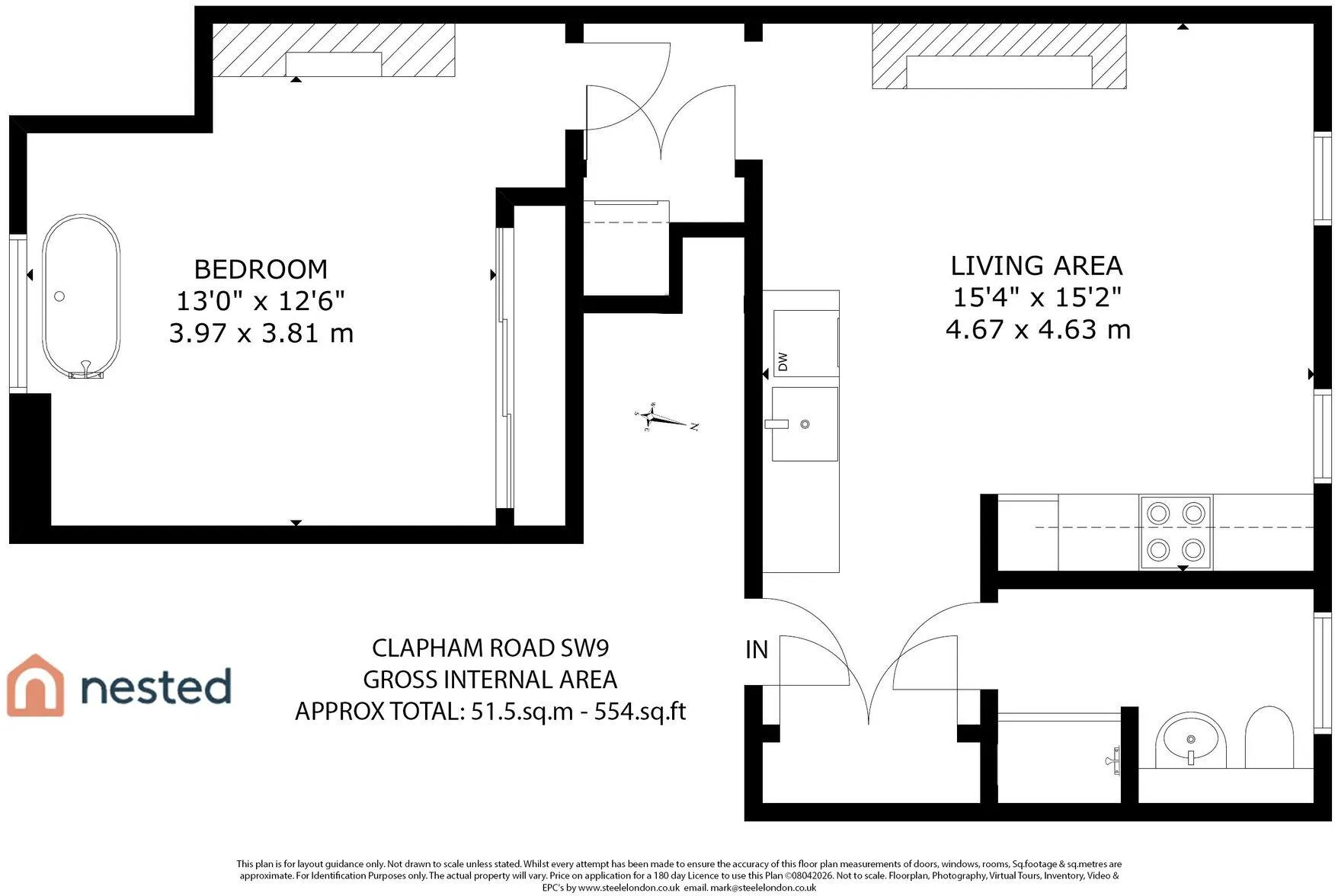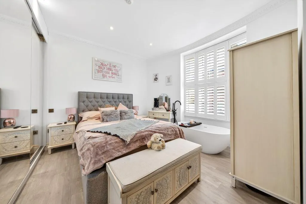 Spanning across 554 square foot, the property has an open-plan living/ kitchen area, a large bathroom and a sizeable bedroom with plenty of storage and a stand alone bath tub.