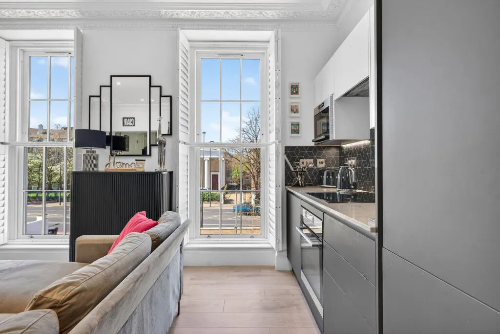 This newly refurbished and immaculate 1 bed flat situated in a stunning Georgian Grade II listed building on Clapham Road, SW9, is available now through Nested. Great care has gone into the re-design of this flat and the incoming purchaser will benefit from a wealth of original features including two lovely fireplaces, beautiful cornicing and huge sash windows flooding the property with natural light.