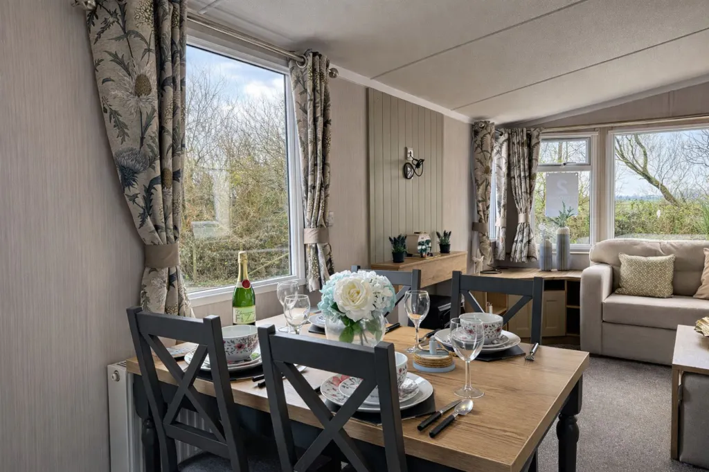 Positioned within a peaceful holiday park, this beautifully presented two-bedroom detached park home offers a superb blend of comfort and convenience, making it an ideal retreat for those seeking a tranquil escape. Purchasing here offers a generous 50-week non-residential season; the property is perfect for extended getaways or a home from home lifestyle. The heart of the home is its inviting open plan lounge, dining, and kitchen area, designed to create a sociable atmosphere for relaxing or entertaining guests. The contemporary kitchen is well-appointed with ample storage and workspace, seamlessly flowing into a spacious lounge and dining area, all finished to a high standard. The main bedroom benefits from its own private en suite shower room (in addition to a main shower room), ensuring comfort and privacy for residents and guests alike. The second bedroom is equally well proportioned and versatile, suitable for family, friends, or as a flexible work or hobby space. Residents can enjoy exclusive use of the park’s excellent facilities, including a heated swimming pool, perfect for unwinding or maintaining an active lifestyle. The recently refurbished clubhouse is a real highlight, offering a welcoming atmosphere and a range of amenities, with the added bonus of a residence discount for food and beverages. This park home is thoughtfully designed to maximise light and space, with modern fixtures and neutral décor throughout, allowing new owners to add their own personal touches. Double glazing and efficient heating ensure year round comfort, while practical touches such as built in storage and a well planned layout add to the property’s appeal. The holiday park itself is renowned for its friendly community and well maintained grounds, providing peace of mind and a sense of belonging. With its combination of stylish interiors, excellent facilities, and a sought after location within a quiet park setting, this property represents a rare opportunity to secure a high quality holiday home with the flexibility of a long season. Whether you are looking for a weekend escape, an extended break, or a base to explore the surrounding area, this two bedroom detached park home offers an outstanding lifestyle opportunity in a truly special environment. Early viewing is highly recommended to fully appreciate all that this delightful property and its setting have to offer.