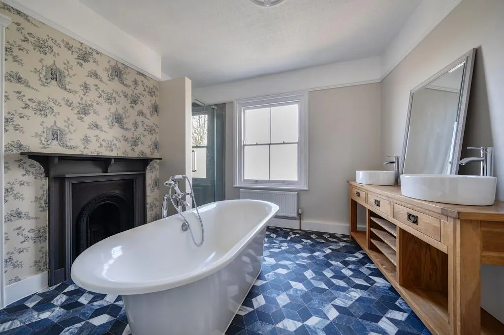 With accommodation arranged over four floors, the ground floor comprises a welcoming entrance porch leading to a spacious living area, with a bedroom also found. To the lower ground floor is a sitting room, while the heart of the home is an exquisitely designed Shaker kitchen and dining space wit feature skylight, complete with integrated appliances and direct access onto the garden with a shower room with potential to be converted to a utility room if the buyer wishes. Upstairs, to the first floor, there is a further bedroom, separate WC and a stunning family bathroom, featuring a statement freestanding bath and separate shower cubicle, his & hers sinks. To the top floor, there is the primary triple-aspect bedroom.