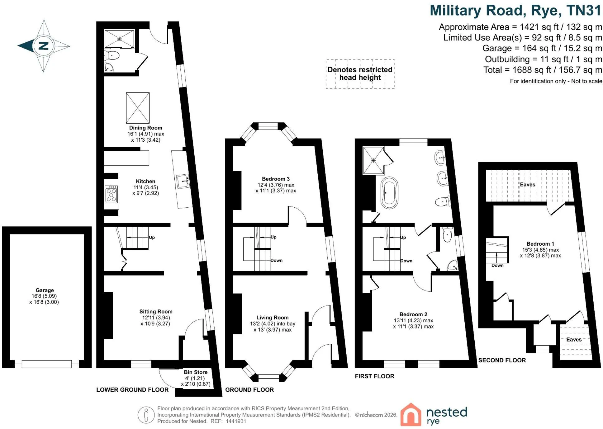 The private rear garden has been landscaped for low maintenance and year-round enjoyment, featuring a paved patio area framed by raised beds planted with a selection of flowers and shrubs, including established roses. A gate at the rear of the garden provides access to the garage, which measures approximately 3m x 5.19m and is equipped with an up and over door, offering secure storage or parking. Immediately behind the rear gate, there is an area which can be used as a parking space for additional convenience. With its combination of period elegance, contemporary finishes, and practical features both inside and out, this exceptional home is ready to move into and enjoy from day one.