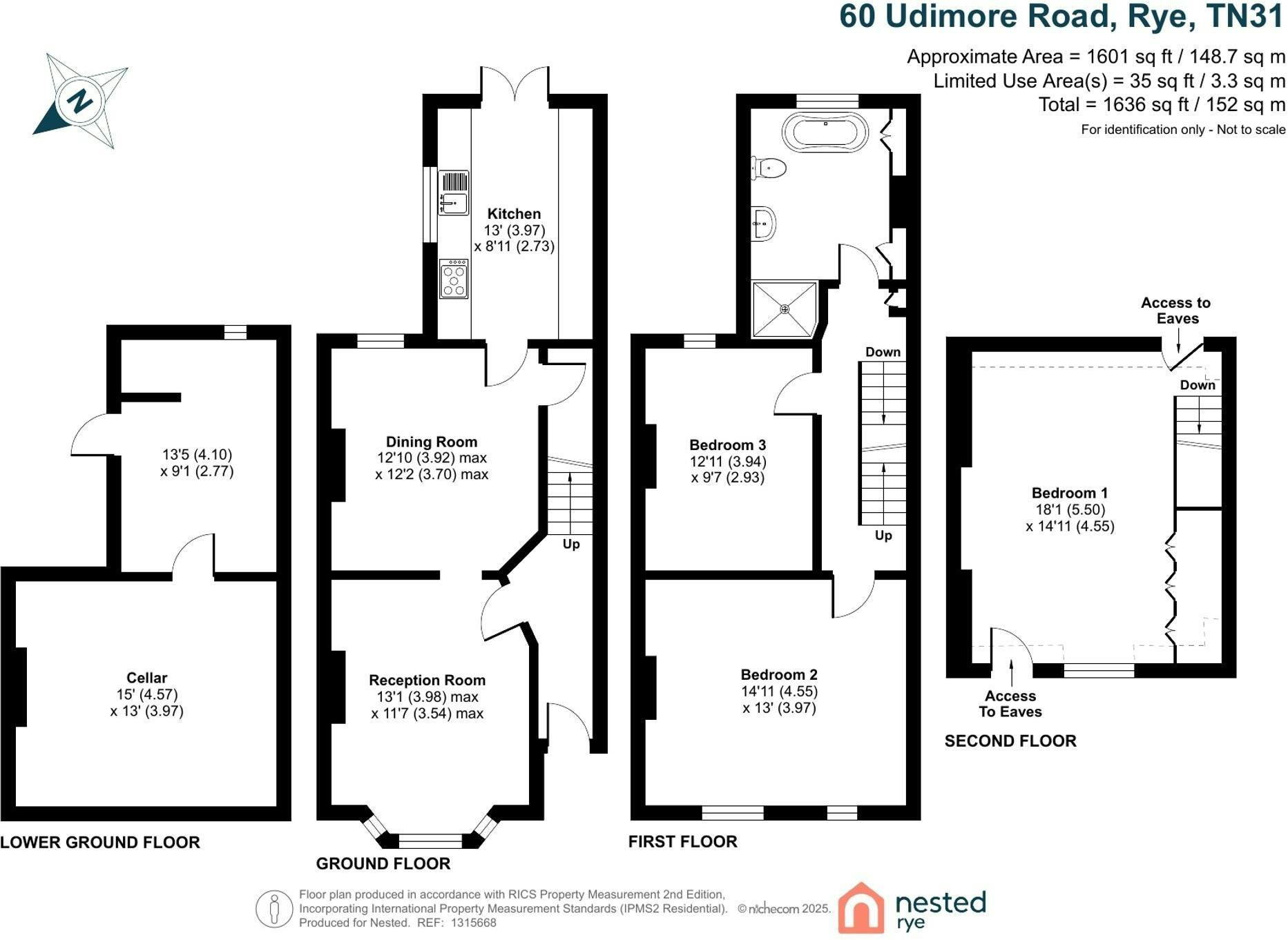 The accommodation is comprised over three floors, benefitting throughout from character features and high ceilings. The ground floor comprises, entrance hall, cosy lounge with feature log burner and bay window, open access into the dining room and a kitchen suitable for the family. To the first floor, there are two double bedrooms, as well as the beautiful bathroom, equipped with freestanding bath, along with a separate walk-in double shower. To the second floor, is another large double bedroom.