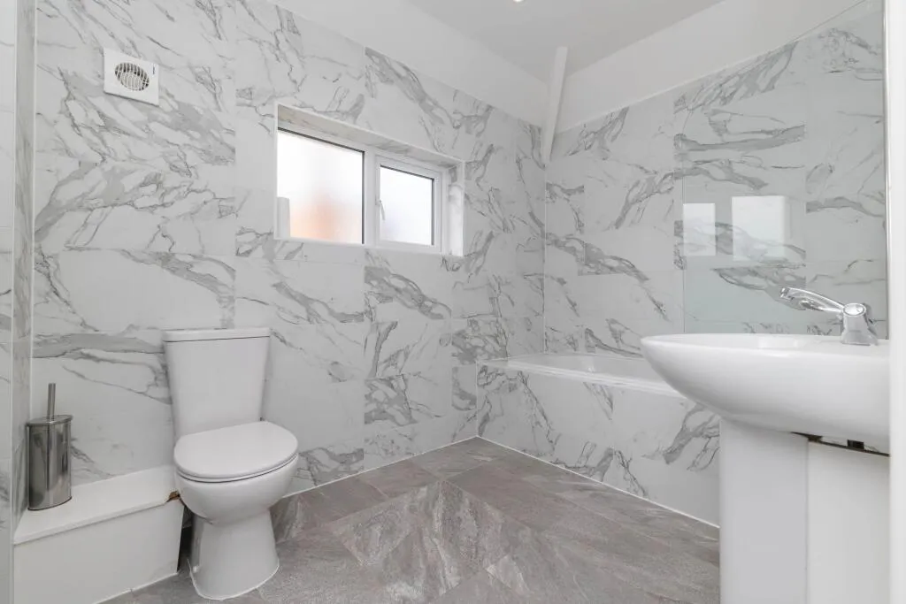 Upstairs, the property continues to impress with three well sized bedrooms, all thoughtfully finished in neutral tones to create calm, versatile spaces ready for personalisation. The family bathroom has been stylishly upgraded with a modern suite, contemporary tiling, and a clean, elegant finish.