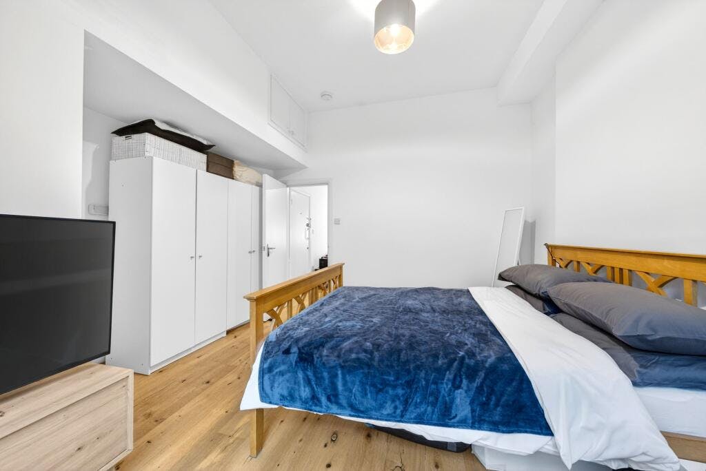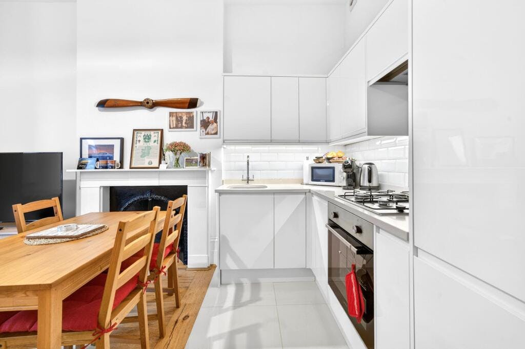 With a spacious, bright and comfortable reception room with sash windows. An open plan kitchen with modern units, integrated appliances and worktop surfaces. A good size double bedroom and a separate smart, stylish shower room.