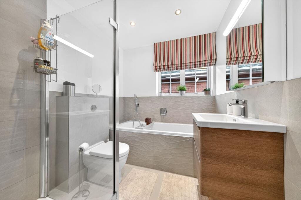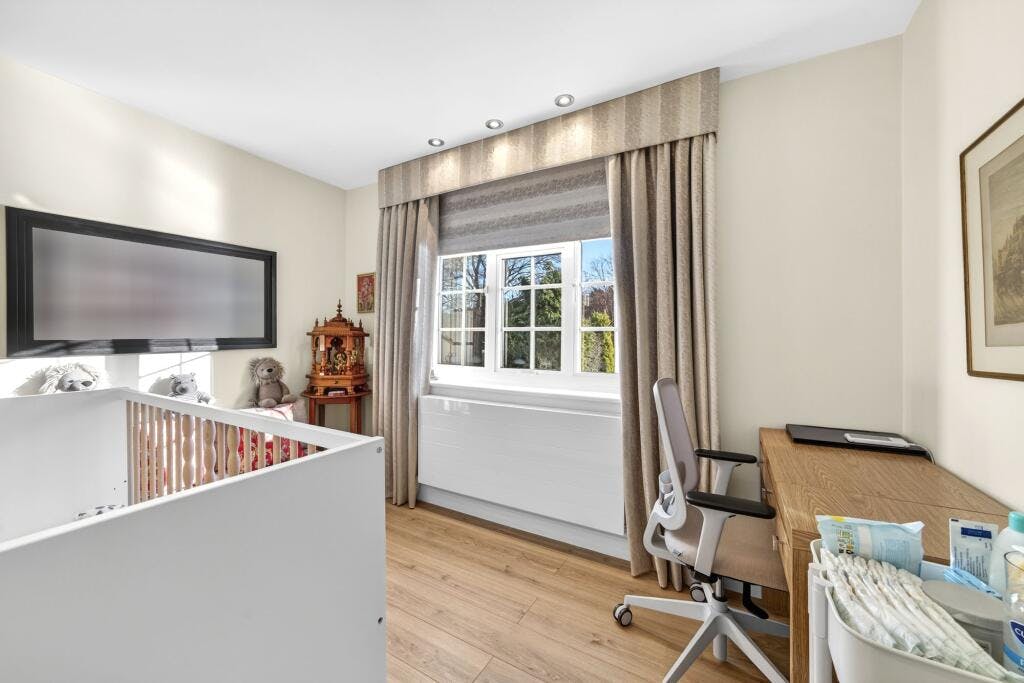 Upstairs, you will find four well-proportioned bedrooms. The principal bedroom benefits from fitted wardrobes and an en-suite shower room, providing a private retreat at the end of the day. The remaining bedrooms are equally spacious, offering flexibility for use as children’s rooms, guest accommodation, or a home office if required. A modern family bathroom, finished to a high standard, serves the other bedrooms and ensures comfort for all residents.