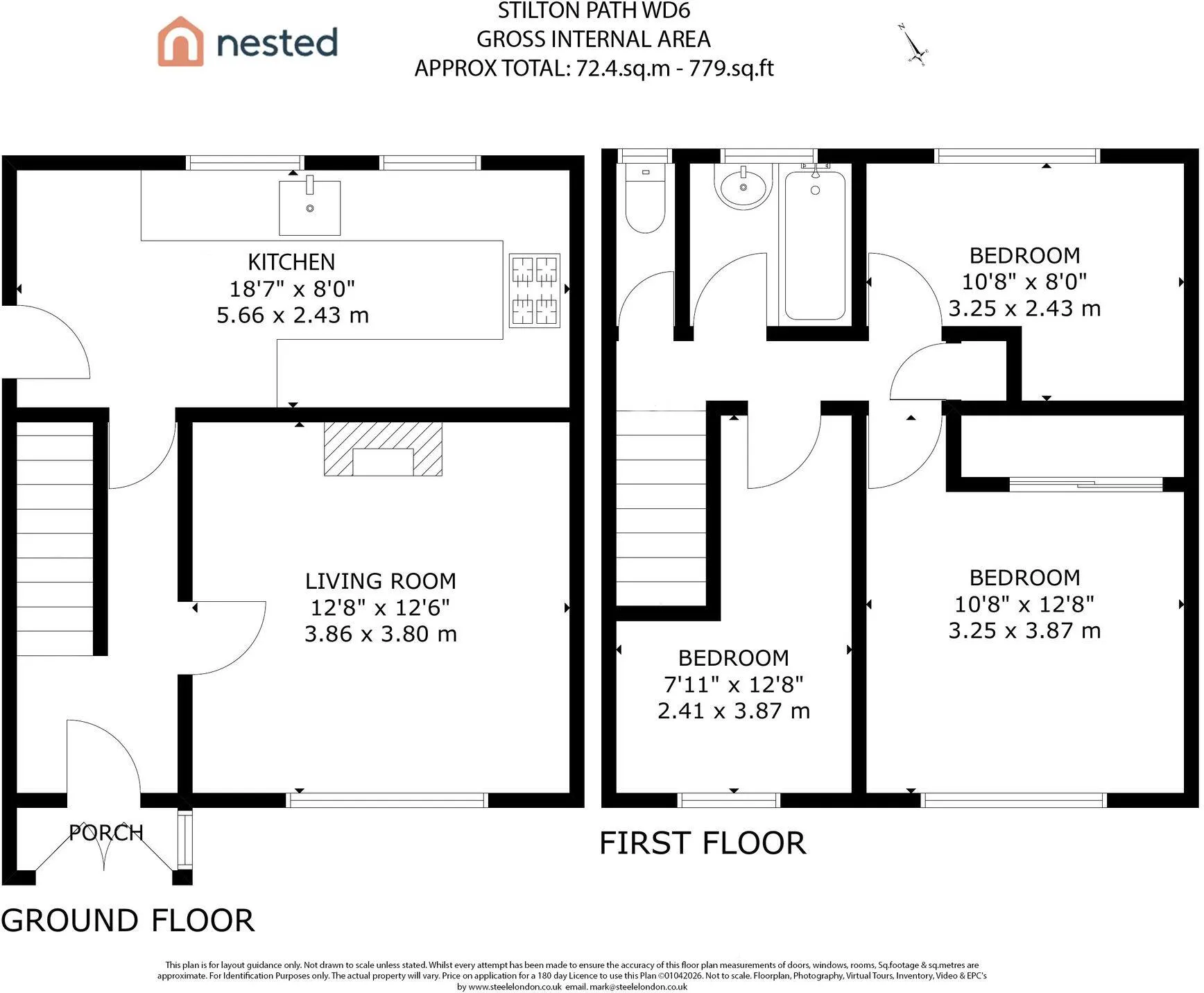 The modern fitted kitchen features ample storage and workspace, making it ideal for family meals and gatherings. Upstairs, there are three well-proportioned bedrooms, each offering comfortable accommodation and plenty of natural light.