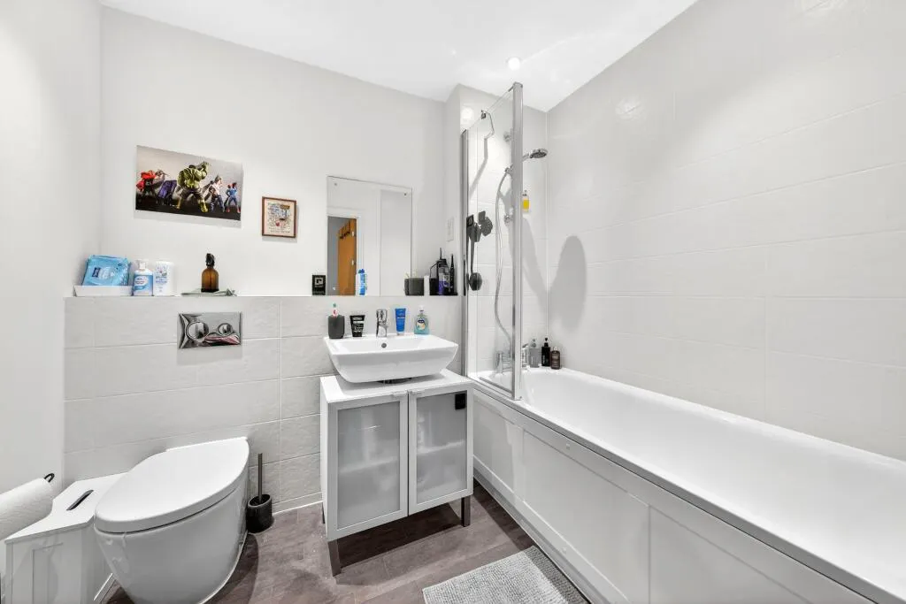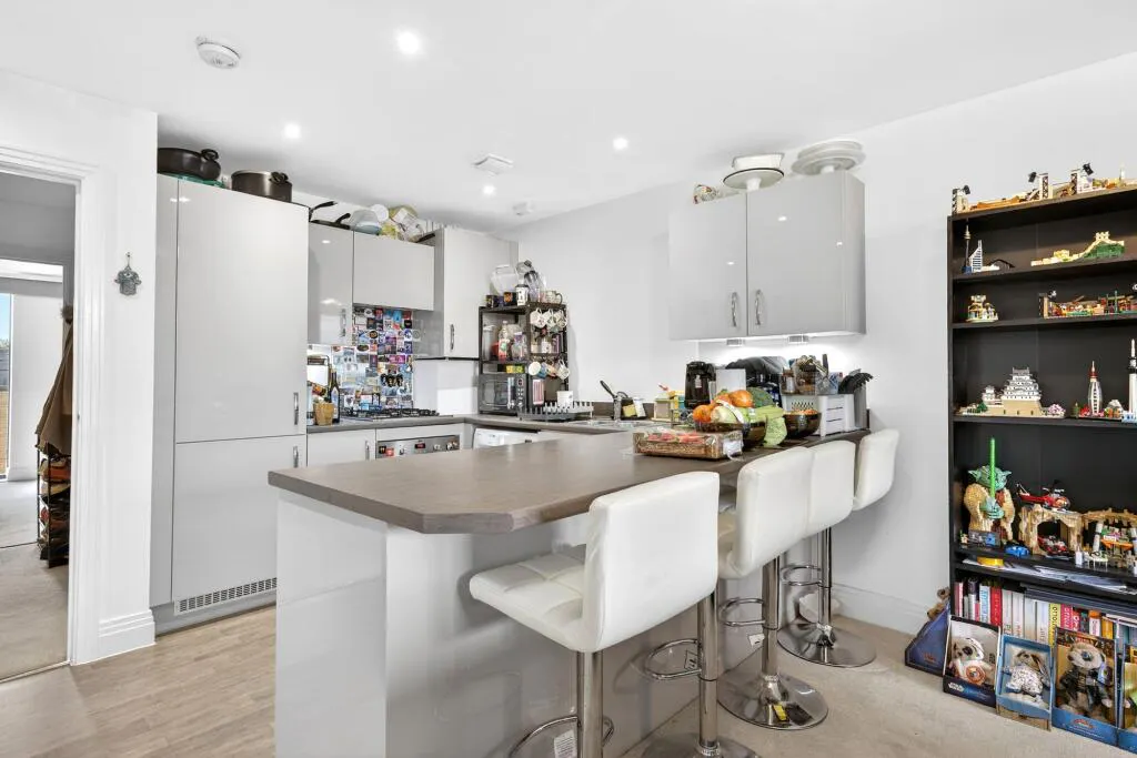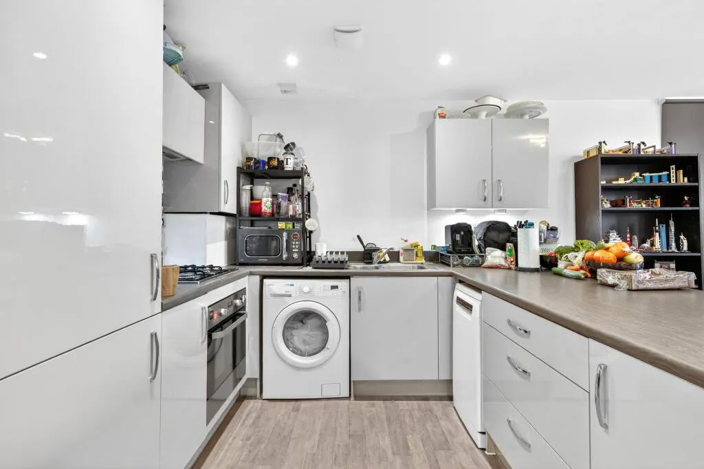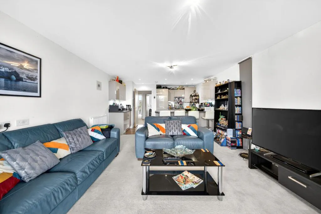 The modern kitchen is well-equipped and flows seamlessly into the main living space. Both bedrooms are well-proportioned, and the flat is presented in excellent condition throughout, ready for immediate occupation.